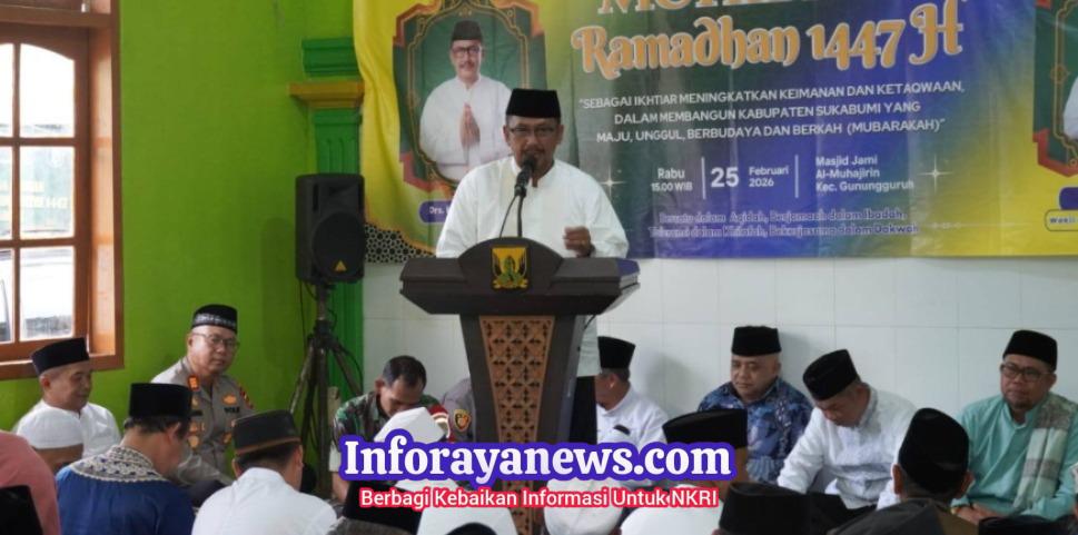 inforayanews.com, Sukabumi, – Dalam suasana penuh kehangatan Ramadhan, Bupati Sukabumi H. Asep Japar bersama Wakil Bupati H. Andreas menyambangi Masjid Jami Al-Muhajirin, Kampung Ciburial, Gunungguruh, Rabu (25/2/2026). Agenda yang dikemas dalam Muhibah Ramadhan ini bukan sekadar silaturahmi, melainkan juga wadah menyampaikan capaian pembangunan sekaligus mendengar aspirasi warga.