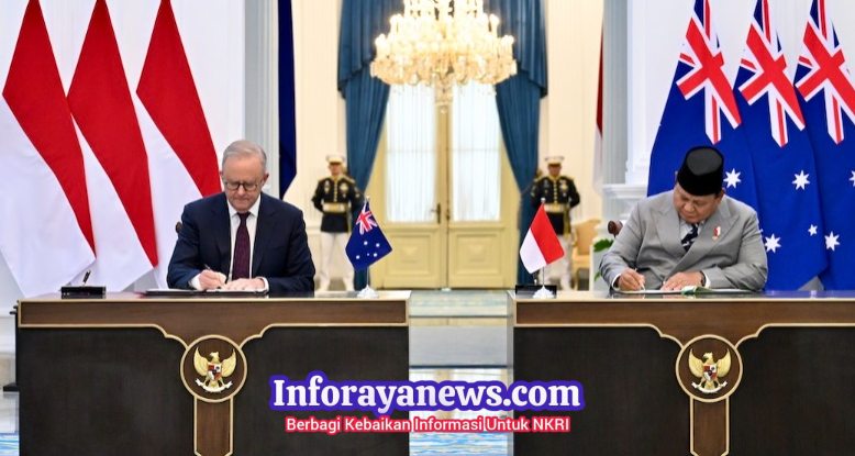 Inforayanews.Com,- Jakarta,- Presiden Republik Indonesia, Prabowo Subianto, bersama Perdana Menteri (PM) Australia, Anthony Albanese, menegaskan komitmen memperkuat kemitraan strategis kedua negara melalui penandatanganan Traktat Keamanan Bersama. Kesepakatan bersejarah ini diumumkan dalam Keterangan Pers Bersama di Istana Merdeka, Jakarta, Jumat (6/2/2026).