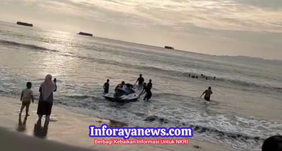 InfoRayaNews.com, Sukabumi – Aktivitas wisata air di Pantai Buffalo, Palabuhanratu, Kabupaten Sukabumi, berubah menjadi kepanikan setelah terjadi kecelakaan jetski yang melibatkan dua orang wisatawan, Senin (5/1/2026).