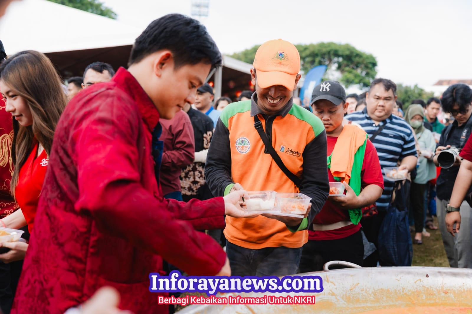 InfoRayaNews.Com,- Jakarta – Kemeriahan acara puncak Imlek Festival 2577 yang digelar di Lapangan Banteng, Jakarta, begitu terlihat dari padatnya pengunjung di area kuliner. Salah satu daya tarik utama dalam festival ini adalah sajian Ketupat Cap Go Meh raksasa dari kreator konten kuliner, Bobon Santoso.
