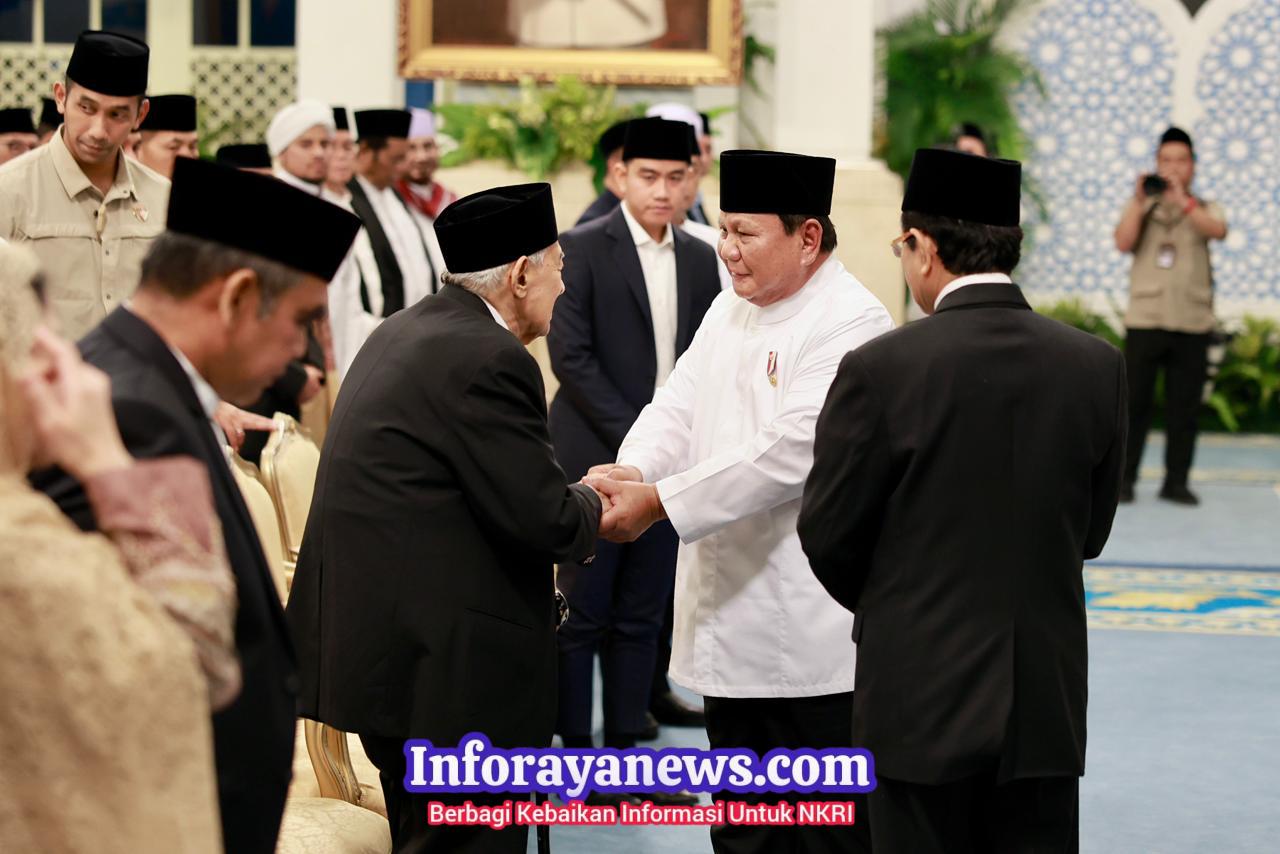Dalam sambutannya, Presiden RI Prabowo Subianto menyampaikan rasa terima kasih kepada para ulama dan tokoh agama yang hadir dalam peringatan tersebut, khususnya kepada ulama tafsir terkemuka, Muhammad Quraish Shihab, yang menyampaikan ceramah singkat namun penuh makna.