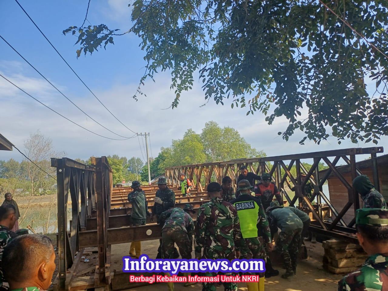 Meski bekerja di bawah terik matahari, para prajurit tetap menunjukkan semangat tinggi. Mereka tak kenal lelah demi memastikan akses transportasi warga segera pulih. Kehadiran jembatan ini sangat dinantikan masyarakat karena menjadi jalur vital penghubung antarwilayah.