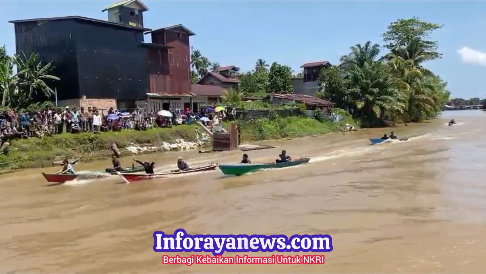 Tak pelak, ratusan masyarakat tampak memadati bantaran sungai yang menjadi lokasi balapan. Mereka antusias menyaksikan adu cepat mesin-mesin dari perahu kayu yang melaju kencang dengan suara khasnya.