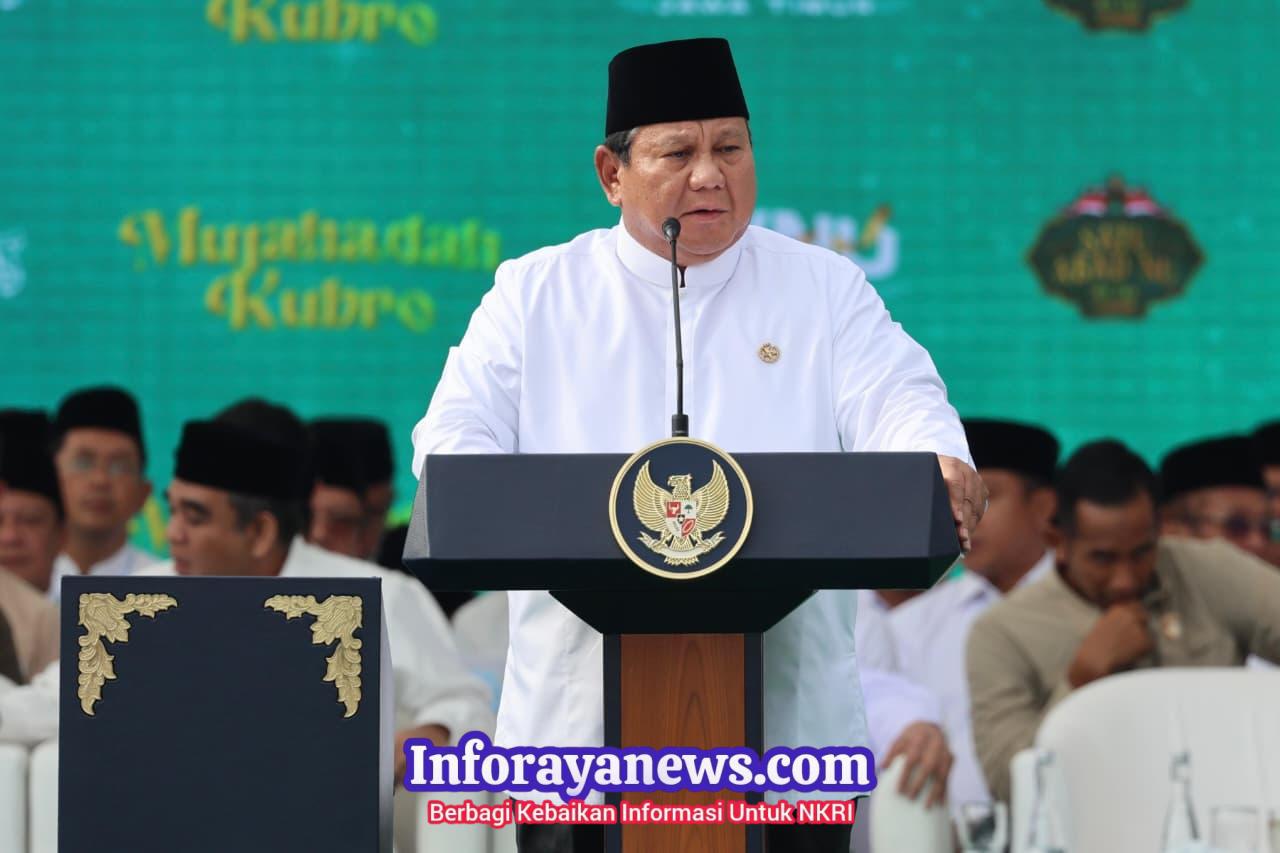 Inforayanews.com, Malang — Presiden RI Prabwo Subianto mengatakan makin bersemangat ketika berpidato pagi hari di depan ratusan ribu kiai, nyai, dan santri. Semangat itu bahkan tecermin pada pembukaan pidatonya pada acara Mujahadah Kubro Satu Abad Nahdlatul Ulama (NU) di Malang, Jawa Timur, Minggu (8/2).