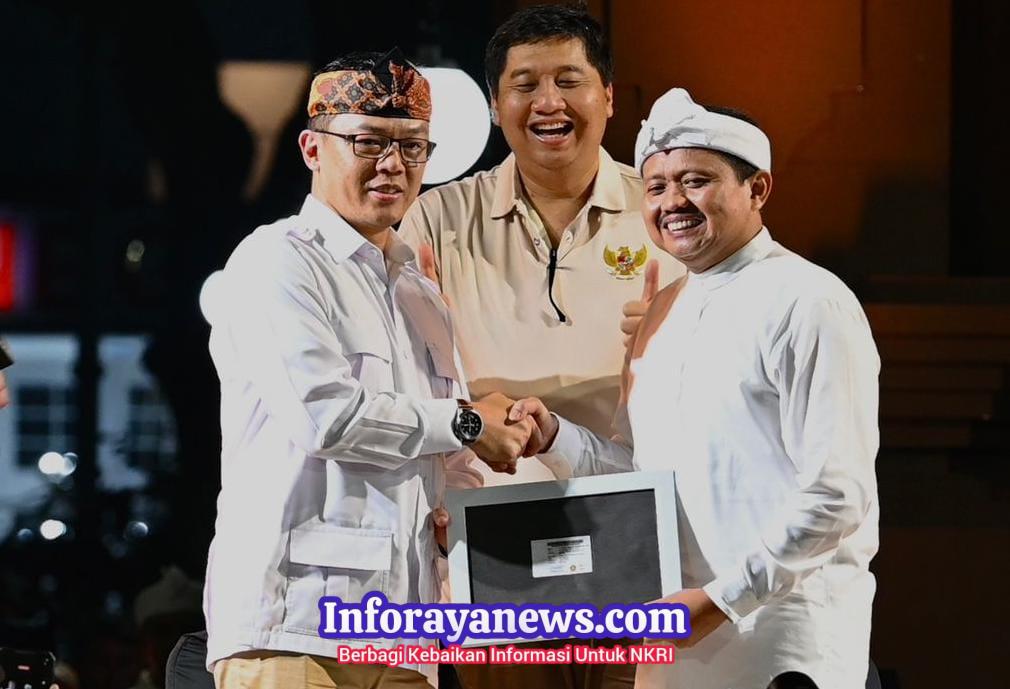 Sekjen DPP Partai Gerindra Sugiono resmi memberikan kartu tanda anggota kepada Bupati Sumedang Dony Ahmad Munir pada Jumat malam (13/02/2025).