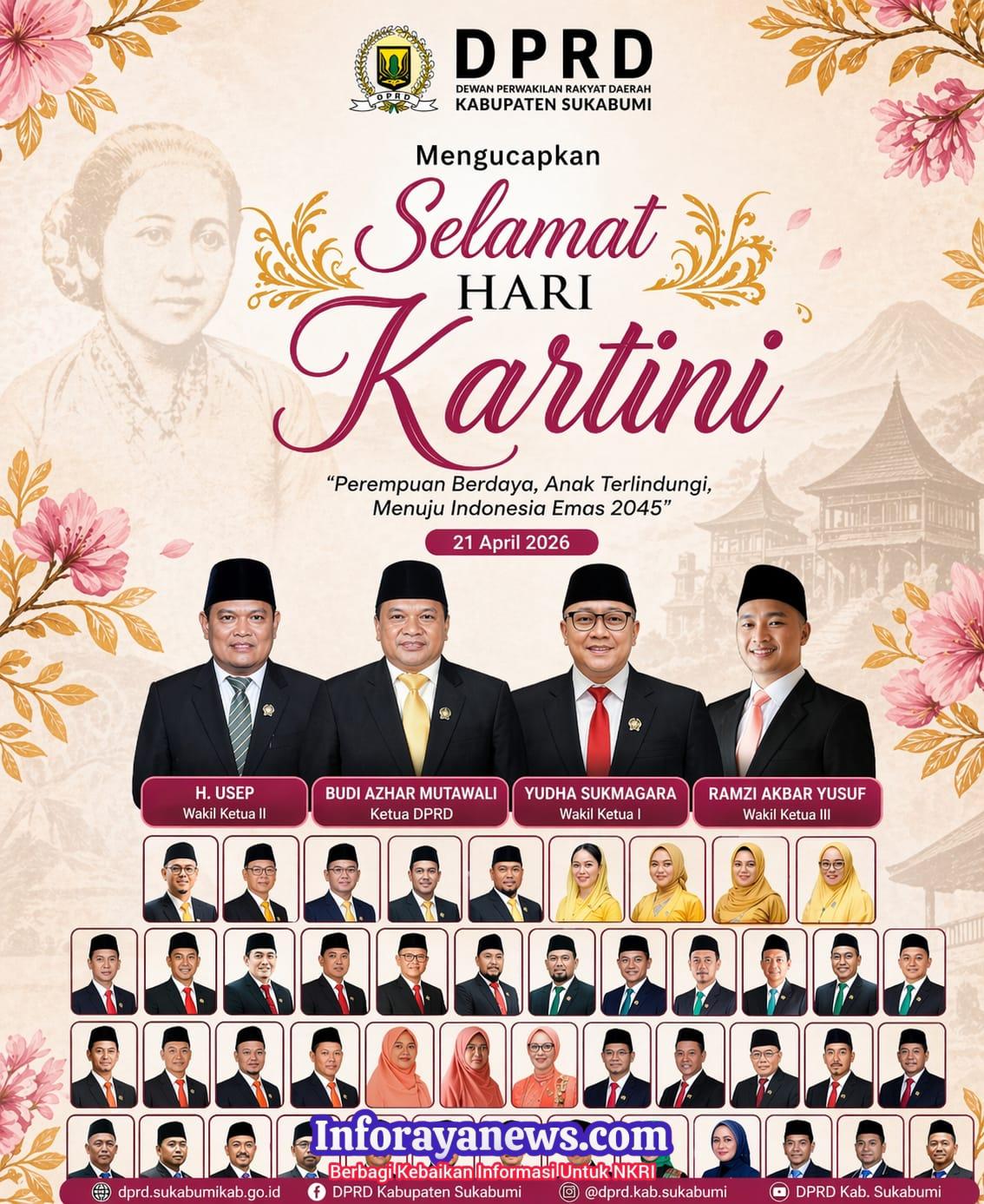 Sukabumi, 21 April 2026 – Peringatan Hari Kartini dimaknai secara mendalam oleh DPRD Kabupaten Sukabumi sebagai momentum untuk memperkuat kiprah perempuan dalam pembangunan daerah. Dalam suasana penuh semangat kebangsaan, lembaga legislatif menegaskan bahwa perempuan memiliki peran penting sebagai bagian integral dalam mewujudkan visi Indonesia Emas 2045.